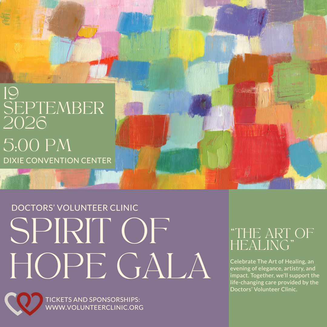 Join us at this year's Spirit of Hope Gala where we will celebrate "The Art of Healing" through artistry and storytelling. We will enjoy a social hour with a silent auction, open bar, interactive art installations, and art displays from our community's artists. We will then host the program to delve deeper into the story of the Doctors' Volunteer Clinic and the impacts we have made. Dinner and dessert will be served followed by our famous fundraiser game.